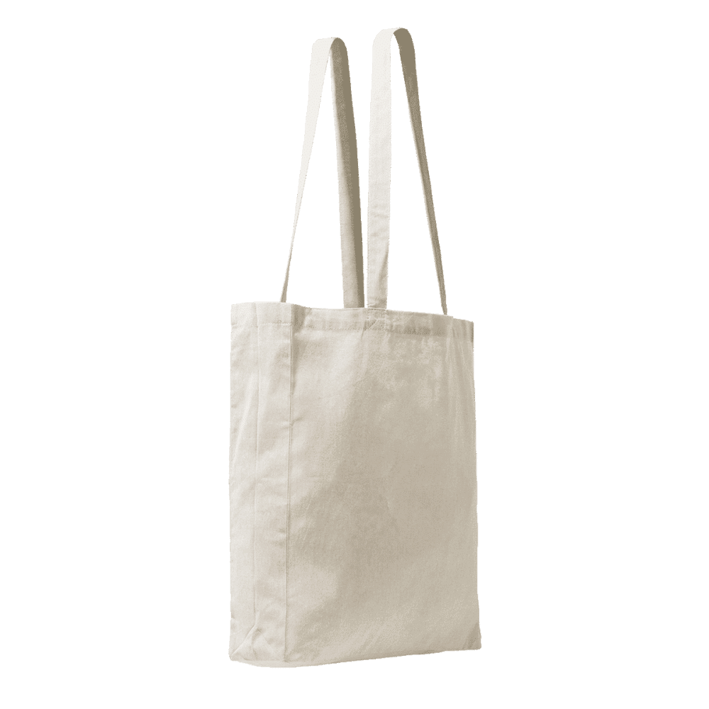 Recycelte Baumwolltasche aus 100% recycelter Baumwolle . 140 g/qm in melierter Ausführung mit 70 cm langen Griffen.